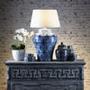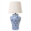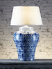 The Churchill is a charming large oriental style ceramic table lamp featuring a glazed blue and white patterned base in the classic ginger jar style.