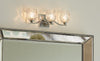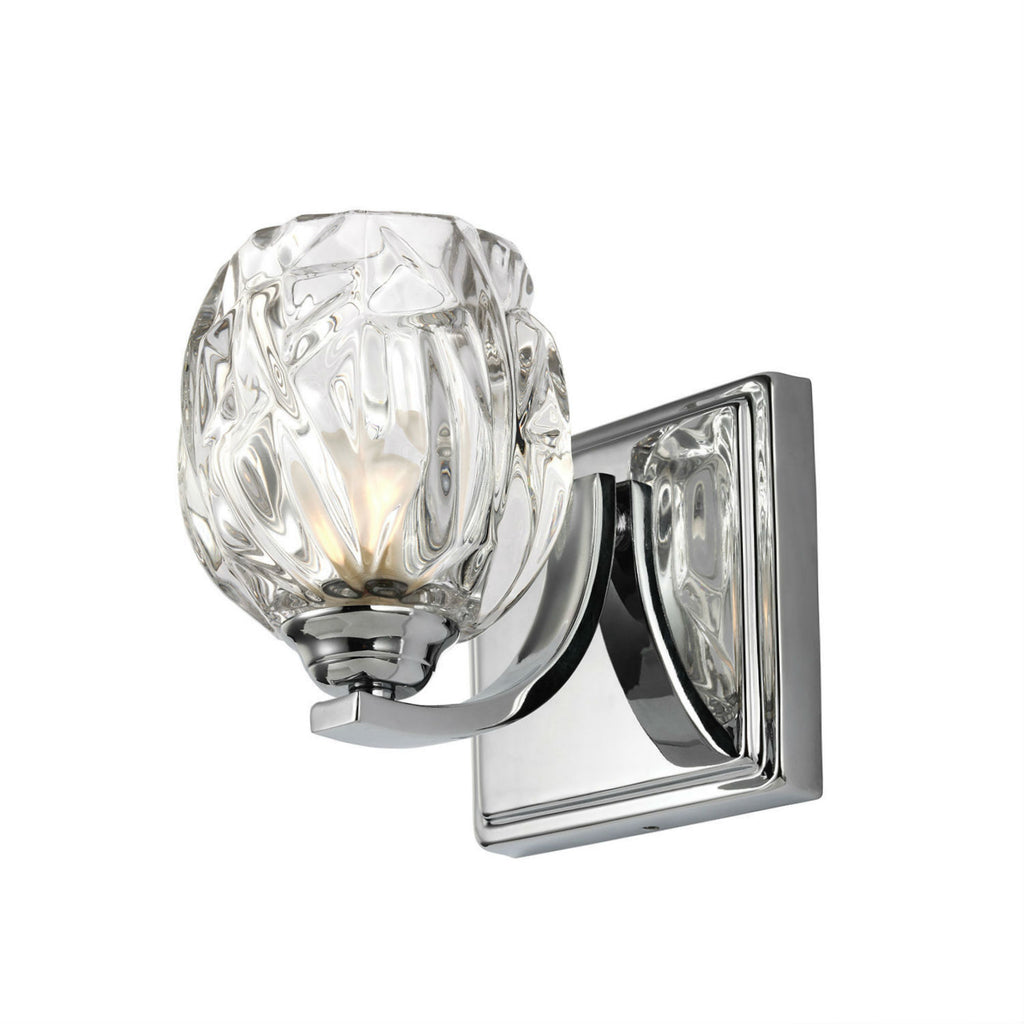 The glamorous Kalli bath lighting collection by Feiss emits soft light sparkling through thick, multi-faceted, clear pressed crystal glass shades. The elegant and feminine aesthetic is grounded with a tailored back plate to add an extra design detail, ensuring the transitional approach complements a wide array of décor, enhanced by the LED lamps.